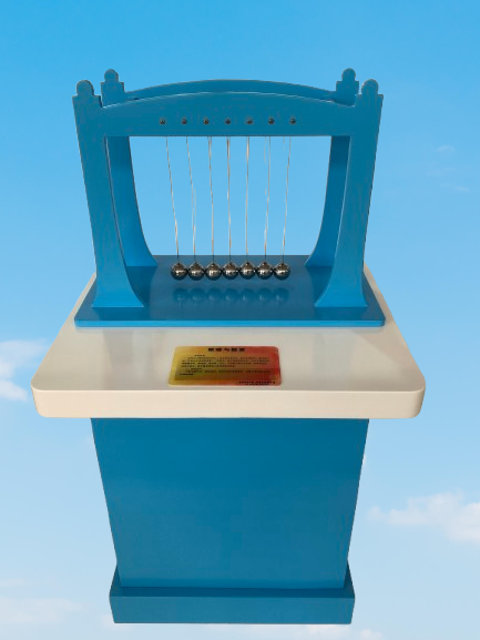 功能概述:本展項展示了形狀和質(zhì)量相同的演示球(重心在一條水平線上)碰撞時的動量守恒現(xiàn)象。參觀者可以像牛頓和伽利略那樣學(xué)習(xí)力學(xué)原理、重力以及運動定律。觀眾輕輕拉起一個球并放手,觀察其碰撞現(xiàn)象;再拉起兩個或多個小球進行碰撞,觀察現(xiàn)象。通過演示讓觀眾了解作用力與反作用力是相等且相對的這一原理。