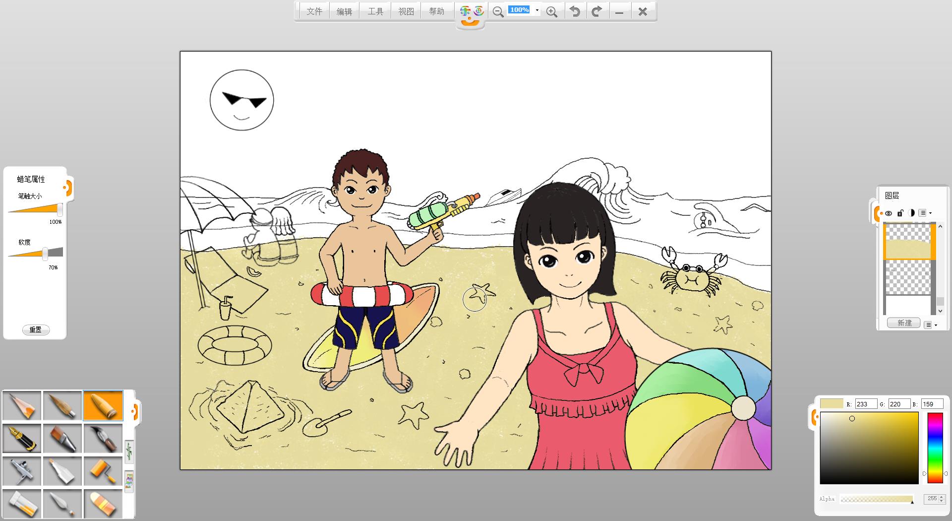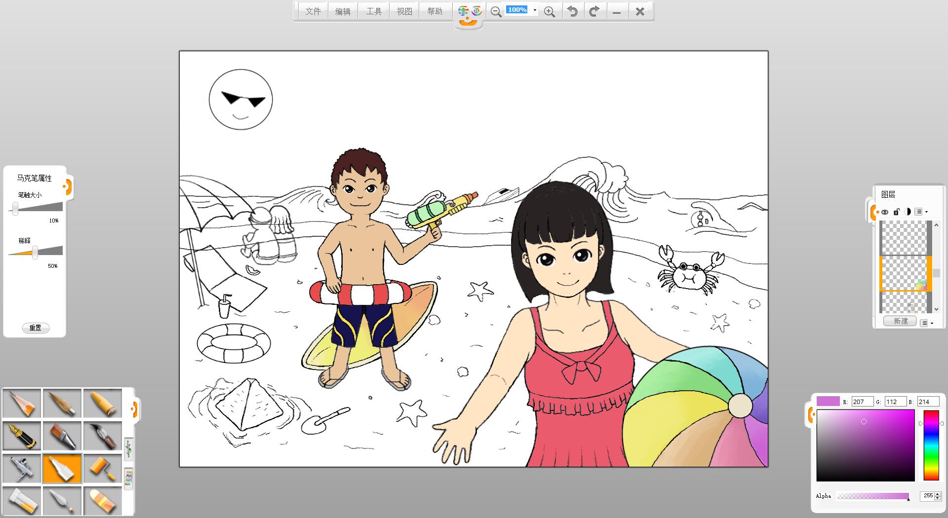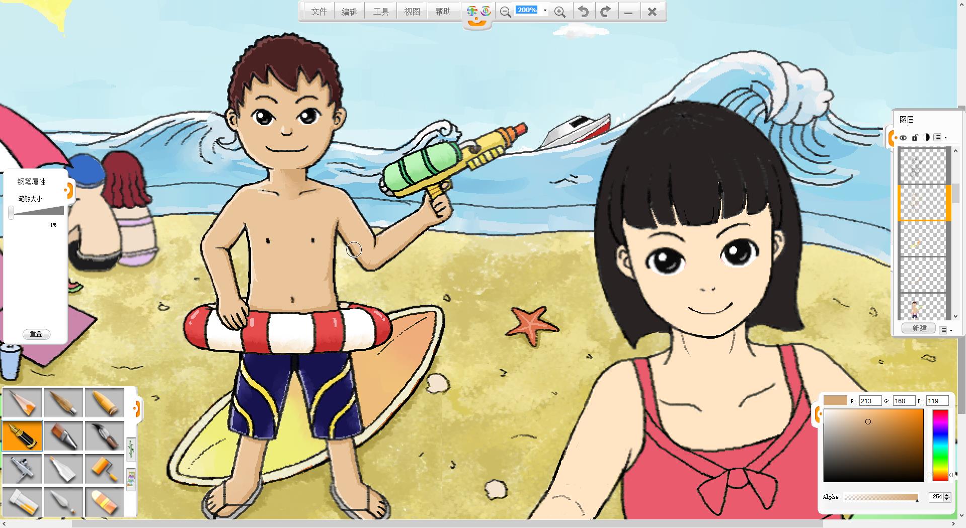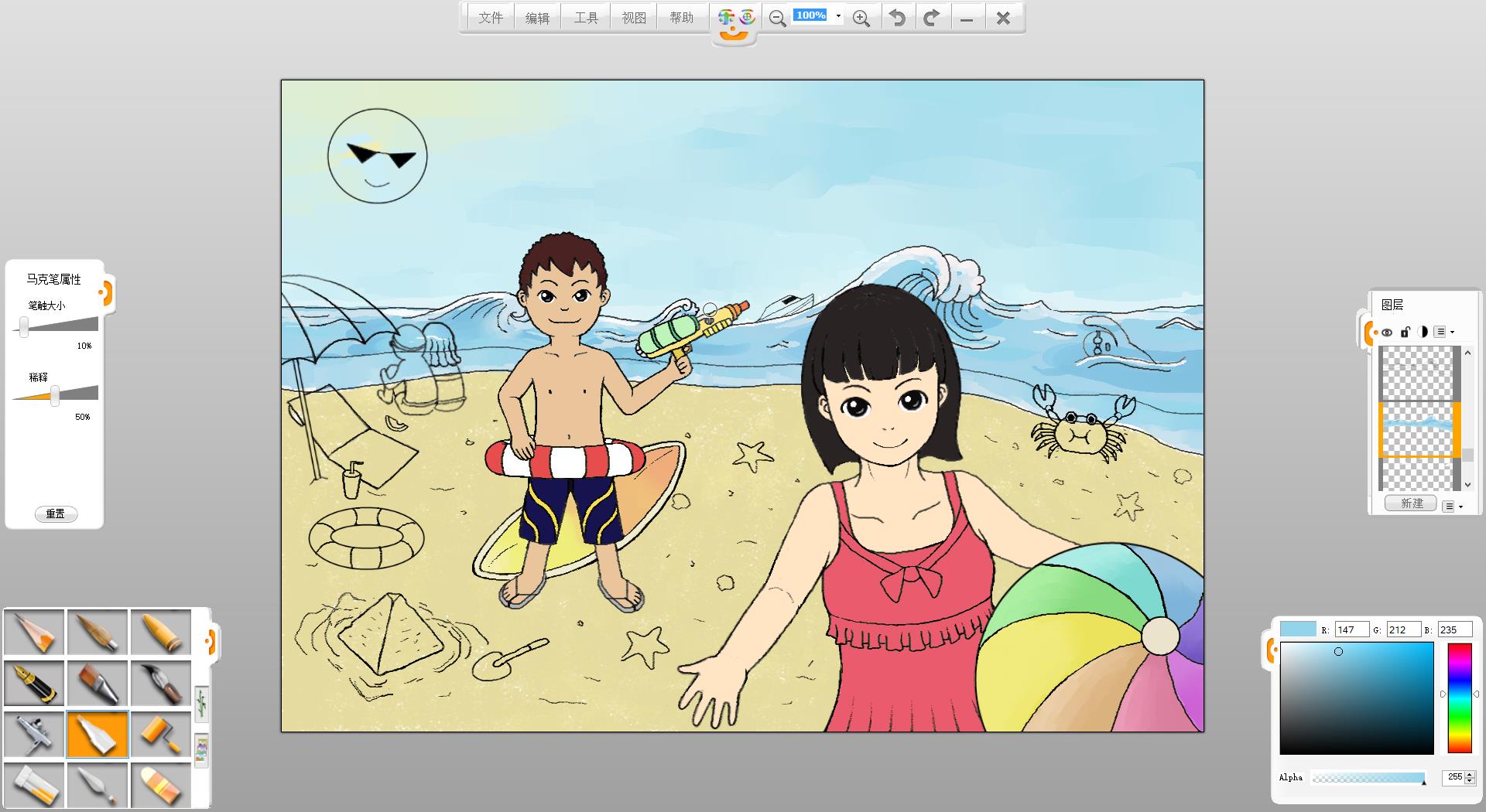 26.一幅“玩轉暑假”的作品創作完成了,如果有時間還可以給人物更換不同的發型和服裝。