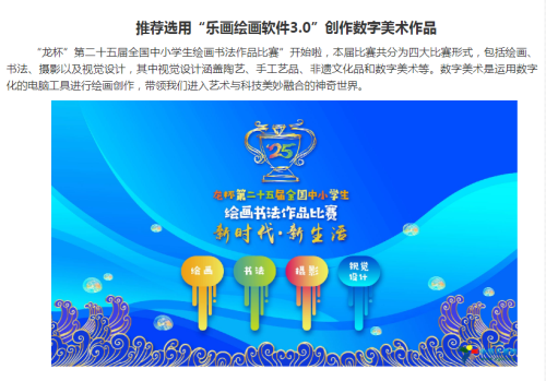 樂畫繪畫軟件獲得由教育部辦公廳發文公布、由中國兒童中心主辦的第二十五屆全國中小學生繪畫書法作品比賽的推薦選用