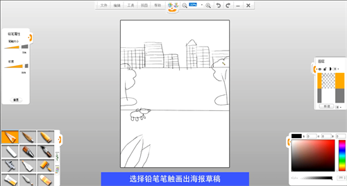 創(chuàng)建一個空白圖層,選擇鉛筆筆觸畫出海報草稿