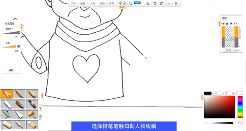 降低草稿圖層不透明度,新建圖層,選擇鉛筆筆觸勾勒線稿,選擇鉛筆筆觸勾勒人物線稿