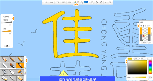 選擇毛筆筆觸畫出標題字,選擇鉛筆筆觸描出標題字輪廓