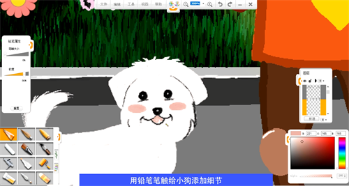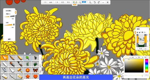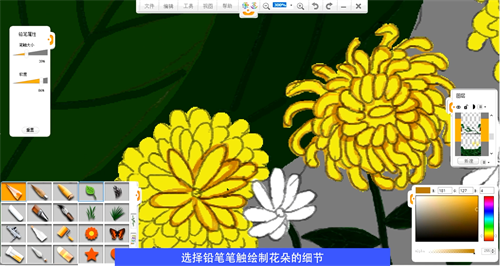 選擇鉛筆筆觸繪制花朵的細節(jié),再畫出花朵的高光