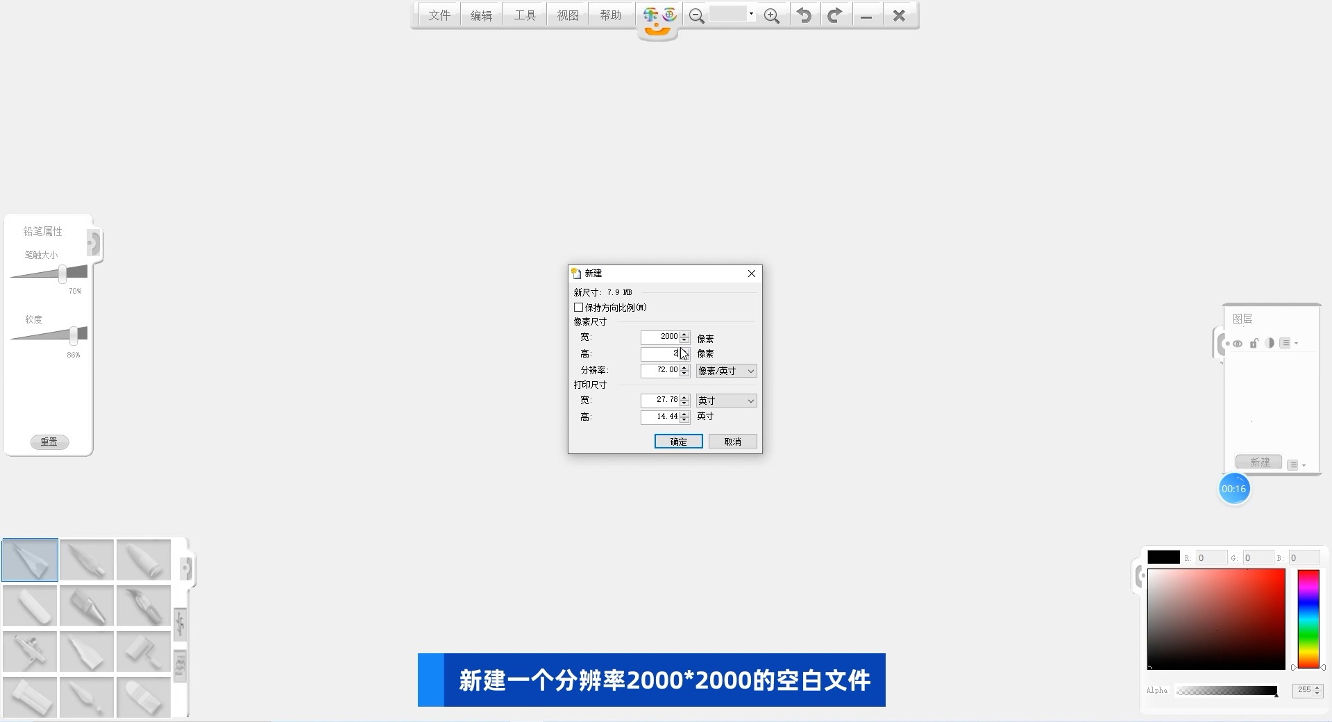 01打開樂畫軟件,新建一個(gè)長2000像素,寬2000像素的空白文件