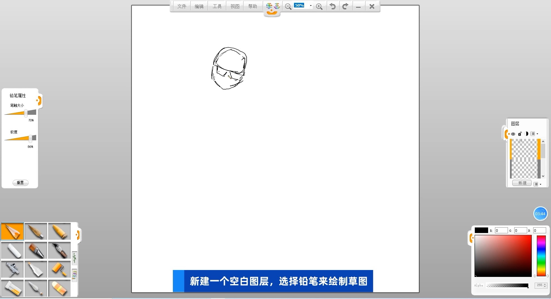 02新建一個(gè)空白圖層,選擇鉛筆筆觸來繪制海報(bào)的草圖