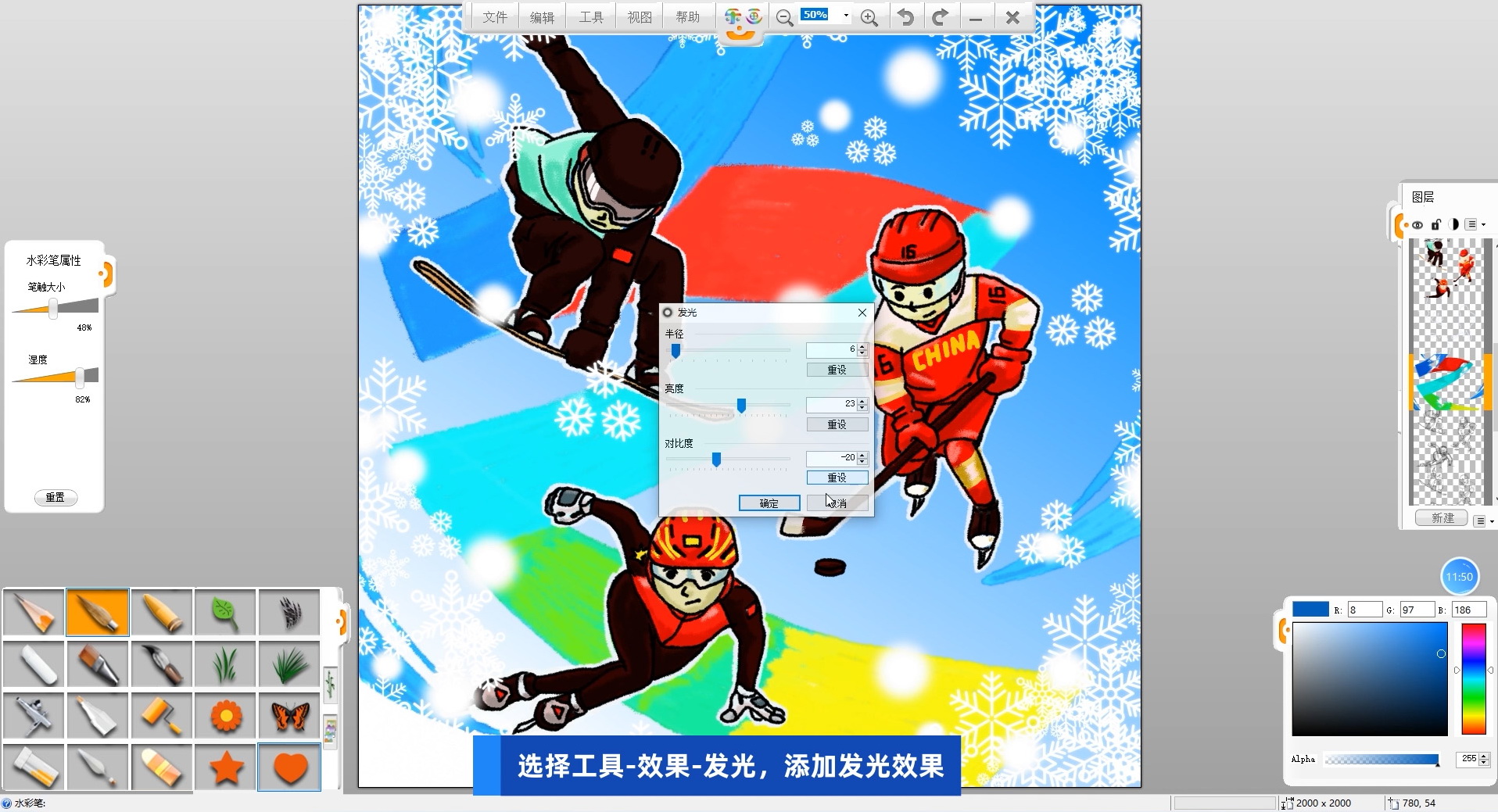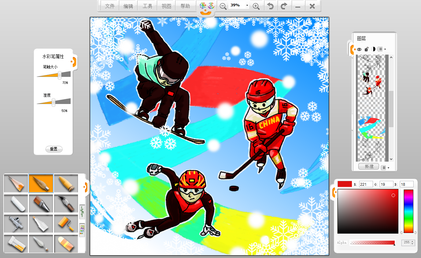 使用樂畫繪畫軟件繪制冰雪運(yùn)動(dòng)主題海報(bào)