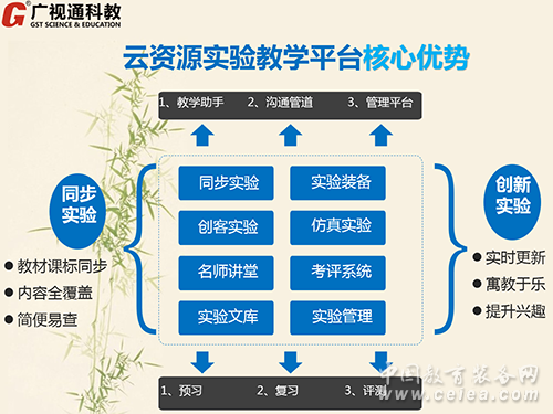 云資源實驗教學平臺將同步實驗、名師講堂、創客實驗、裝備使用、創新實驗等資源,融合校園信息化智能控制系統和國家教育資源公共平臺,有效解決了實驗課程開課率不高,實驗裝備不完善,學生對科學實驗的興趣不高,實驗裝備的使用與維護不到位,等實驗教學和管理的疑點、難點、痛點等問題,有效提升教學質量。