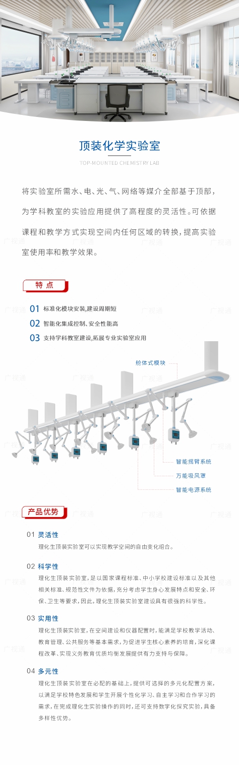 教育裝備數字化一站式解決方案,智能理化生實驗室、中考實驗操作考評系統、實驗仿真與教學系統、數字書法教學云系統、中學AI教考實驗室(升降式/便攜式智能終端)、頂裝/吊裝實驗室、探究實驗室、科學實驗室、人工智能科創實驗室、智慧書法教室、數字音樂教室、美術教室、數字地理教室、數字歷史教室、心理咨詢室、閱覽室、舞蹈室、陶藝室、烹飪教室、通用技術實驗室、勞動教育功能教室、科普探究等