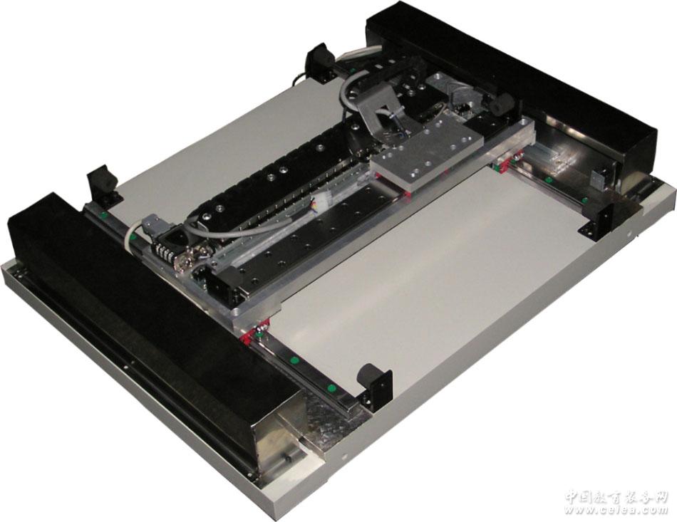 支承系統可選空氣軸承、滾珠導軌、滾柱軸承等。速度快,最大速度5米/秒(300米/分),加速度大,最大加速度1G到10G可選。