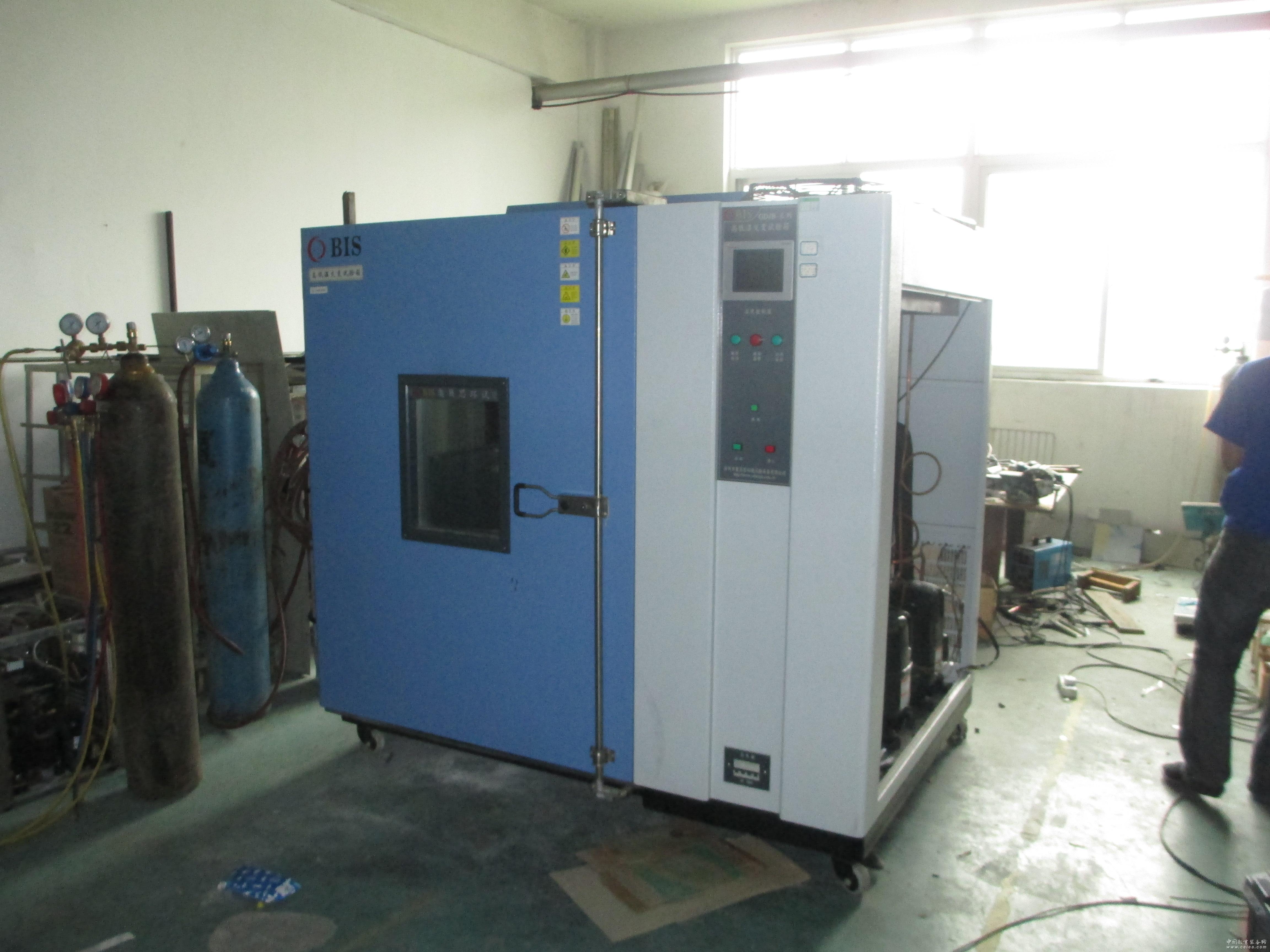 產(chǎn)品詳細介紹產(chǎn)品名稱 高低溫試驗箱 一、產(chǎn)品用途 產(chǎn)品適用于電工、電子產(chǎn)品、元器件、零部件及其材料在高低溫環(huán)境下儲存、運輸和使用時的適應(yīng)性試驗,以及溫度漸變試驗。還可以對電子元器件進行應(yīng)力篩選試驗。 二、高低溫試驗箱產(chǎn)品規(guī)格(單位:mm) 1.型號GDW-50 工作室尺寸:D×W×H 320×350×450 外形尺寸950×870×1420 2.型號GDW-100 工作室尺寸:D×W×H 400×500×500 外形尺寸1030×1020×1470 3.型號:GDW-150 工作室尺寸:D×W×H 500×500×600 外形尺寸1080×1050×1570 4.型號:GDW-225 工作室尺寸:D×W×H 500×600×750 外形尺寸1080×1120×1700 5.型號:GDW-250 工作室尺寸:D×W×H 500×600×810 外形尺寸1100×1120×1780 6.型號:GDW-500 工作室尺寸:D×W×H 700×800×900 外形尺寸1260×1320×1920 7.型號:GDW-800 工作室尺寸:D×W×H 1000×800×1000 外形尺寸1610×1320×1960 8.型號:GDW-010 工作室尺寸:D×W×H 1000×1000×1000外形尺寸1610×1560×1960 三、技術(shù)參數(shù) 1.溫度范圍:-20℃~150℃(A)、-30℃~150℃(B)、-40℃~150℃(C)、-60℃~150℃(D)、-70℃~150℃(E) 2.溫度均勻度:≤±2℃ (空載時) 3.溫度波動度:≤±0.5℃ (空載時) 4.降溫速率:0.7~1.0℃/min 5.升溫速率:1.0~3.0℃/min 6.時間設(shè)定范圍:0~999(H、M、S) 7.電源電壓:380V±10% 8.設(shè)備總功率:3KW~13.5KW 四、高低溫試驗箱箱體結(jié)構(gòu) 1.箱體采用整體結(jié)構(gòu)。 2.箱體內(nèi)側(cè)采用1.0mmSUS304B不銹鋼板,外側(cè)采用1.0mm冷軋鋼板噴塑,保溫材料采用超細玻璃保溫棉。 3.大門密封采用雙層硅橡膠密封材料。 4.觀察窗為多層導(dǎo)電膜鋼化中空玻璃,尺寸大小為200×300mm為防止低溫時玻璃結(jié)霜,特設(shè)內(nèi)置式特制發(fā)熱絲環(huán)繞,并設(shè)有照明燈,為觀察提供照明。 5.在箱體側(cè)面設(shè)有帶塞子的φ50mm測試孔,塞子材料為硅橡膠低發(fā)泡,能耐高低溫,兼具保溫效能。 6.在箱體工作室后側(cè)設(shè)置有一個空氣調(diào)節(jié)柜,在其間安裝蒸發(fā)器、電加熱器、風(fēng)機、風(fēng)機蝸殼等設(shè)備。 7.溫度傳感器置于出風(fēng)口。 6.試驗箱內(nèi)的送風(fēng)方式為上送風(fēng)下回風(fēng)方式。 五、加熱與制冷系統(tǒng) 1.加熱器采用瓷架鎳鉻絲電加熱器,此加熱器熱惰性小,壽命長。由儀表輸出可控脈沖占空比PID信號,通過固態(tài)繼電器來控制,控制平穩(wěn)、可靠。 2.低溫制冷采用法國“泰康”全封閉式壓縮機機組。其它制冷部件如美國RANCO、瑞士“ALFALAVAL”、丹麥DANFOSS、意大利CASTEL、日本鷺宮等進口品牌產(chǎn)品。使用R404A環(huán)保型制冷劑。 3.為確保系統(tǒng)安全運行,在系統(tǒng)中需設(shè)置高壓控制、超壓、過載等保護系統(tǒng)。同時為了監(jiān)測系統(tǒng)運行情況,在高壓端設(shè)有高壓表監(jiān)測系統(tǒng)運行情況。 六、控制系統(tǒng) 1.溫度控制儀:采用高精度數(shù)顯溫控儀,控制精確、平穩(wěn),長期運轉(zhuǎn)不漂移。 2.傳感器:PT100測溫傳感器。 3.控制加熱輸出采用固態(tài)繼電器過零觸發(fā),以降低噪聲,減少污染,方便維修,提高控制精度。 4.在控制系統(tǒng)中需設(shè)有安全保護措施,包括:缺相保護、相序錯誤保護、相電壓不平保護、風(fēng)機過載保護、超溫、斷電保護、機組高壓保護、機組過載保護、機組過溫保護、漏電等保護。 5.控制系統(tǒng)設(shè)有方便用戶的操作面板,設(shè)在試驗箱左上部,設(shè)有電源、照明和各功能操作按鍵以及故障指示燈。 6.在系統(tǒng)中除了主控制器外,還設(shè)置一獨立的超溫保護器,即使主控制器出現(xiàn)故障,超溫保護器也能可靠的斷開加熱電源以保護設(shè)備和試品的安全。 7.在電氣控制系統(tǒng)中設(shè)有互鎖裝置,當(dāng)循環(huán)風(fēng)機沒有啟動或過載時制冷機組和加熱系統(tǒng)不能啟動,機組超高壓、過載時制冷機組都將被禁止。 七、執(zhí)行標(biāo)準(zhǔn) 1.GB/T2423.1-2001; 2.GB/T2423.2-2001; 3.GB/T10592-2008; 4.GB/T10589-1989; 5.GB/T11158-1989; 6.IEC68-2-1; 7.IEC68-2-2; 八、設(shè)備使用環(huán)境 1.環(huán)境溫度:5℃~+28℃(24小時內(nèi)平均溫度≤28℃); 2.環(huán)境濕度:≤85%; 3.電源要求:AC380( ±10%)V/50HZ 三相四線制; 4.操作環(huán)境需要在室溫28度以下而且通風(fēng)良好; 5.機器放置前后左右各80公分不可放置東西; |