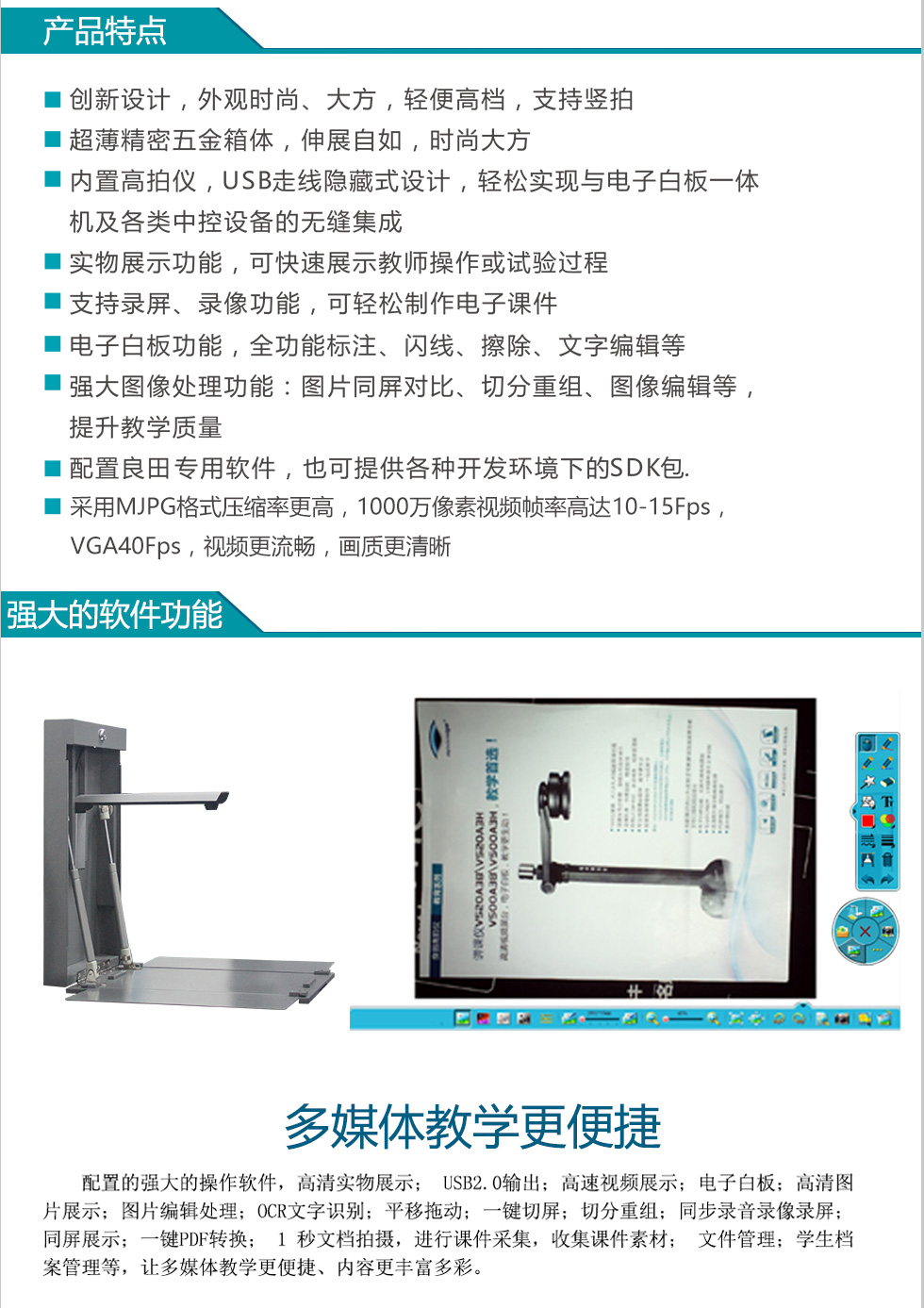 良田PB1000A3S壁掛式教育高拍儀1000萬像素