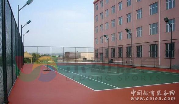 4、全塑型面層一般制作4mm厚,適合鋪設(shè)籃球、排球、網(wǎng)球、羽毛球場等球類場地。