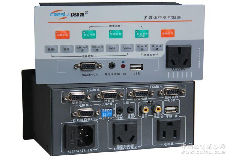 產(chǎn)品詳細(xì)介紹多媒體中央控制系統(tǒng) KS-1500 功能特點(diǎn)參數(shù): 控制面板采用PVC材料,防水防塵防靜電。 整體13鍵,獨(dú)立電腦開關(guān)按鍵,帶電視機(jī)控制功能(開、關(guān)、頻道加、減功能鍵) 桌面開口尺寸:(長)163X(寬)83mm 前置紅外學(xué)習(xí)窗口,狀態(tài)指示燈 面板帶筆記本視頻、音頻、USB、國標(biāo)電源接口 3X2 VGA ,帶寬400MHz,-3db,自帶長線驅(qū)動(dòng)器。 2X1 AUDIO,頻響20Hz~20kHz +1/-3dB 1X1 VIDEO,帶寬100Mz 1路紅外控制,仿真存儲(chǔ)單元32K,可自定義輸出,紅外載波范圍10K-100KHz。 1路可編程RS232控制口 1路銀幕電源 1路投影機(jī)電源 4位ID設(shè)置開關(guān),通過設(shè)置不同ID狀態(tài)可以選擇主機(jī)內(nèi)置多種投影機(jī)232代碼與系統(tǒng)聯(lián)動(dòng)開關(guān)功能 2路I/O口,可連接IC卡,電子鎖,講臺(tái)門狀態(tài)檢測,可做到開門即用,關(guān)門即走。 用戶可自定義系統(tǒng)開關(guān)與投影、屏幕聯(lián)動(dòng)功能,可做到一鍵開關(guān)全部設(shè)備。 全系列投影機(jī)代碼內(nèi)置,方便安裝與維護(hù) 支持紅外數(shù)據(jù)與232數(shù)據(jù)下載與導(dǎo)出功能,方便批量安裝于維護(hù),支持系統(tǒng)底層升級 桌面開口尺寸:(長)163X(寬)83m