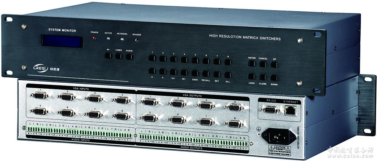 產(chǎn)品詳細(xì)介紹常用規(guī)格及型號 CR-VGA0404 4進(jìn)4出,VGA矩陣切換器 CR-VGA0808 8進(jìn)8出,VGA矩陣切換器 CR-VGA1616 16進(jìn)16出,VGA矩陣切換器 產(chǎn)品描述 VGA-A(A代表Audio,音頻)矩陣系列是一款支持多路音視頻信號輸入,多路音視頻信號輸出的專業(yè)矩陣切換設(shè)備。用于將多個電腦信號和音頻信號同步或異步切換到輸出通道的任一通道。具有RS-232通訊接口和網(wǎng)絡(luò)接口,方便與電腦、遙控系統(tǒng)或各種遠(yuǎn)端控制設(shè)備連接應(yīng)用。 功能特點(diǎn) 視頻信號輸入、輸出端口采用DB15母座 支持快速切換操作 采用可編程邏輯陳列電路,任意交互切換 支持音視頻同步或分離切換功能 支持通道切換權(quán)限設(shè)置,音視頻通道切換權(quán)限可分開獨(dú)立管理 支持視頻信號有:RGBHV、RGBS、RGsB、RsGsBs 350MHz(-3dB),滿載帶寬 信號長距離傳輸失真補(bǔ)償技術(shù) 音頻信號類型:立體聲(平衡/非平衡) 具有掉電記憶功能,帶有斷電現(xiàn)場保護(hù)功能 具有RS-232通訊接口和1路網(wǎng)絡(luò)接口,可通過以太網(wǎng)遠(yuǎn)程控制 任意交互切換 內(nèi)置國際通用電源 |