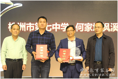 株洲市教育技術(shù)裝備所所長王強、蘆淞區(qū)教育局局長朱金輝為優(yōu)秀組織單位進行了頒獎。