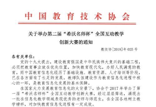 因此,為了更好地幫助教師隊伍的建設,聚集更多信息化教學教師楷模,發揮標桿作用,搭建更豐富多樣的教育資源展示與共享的平臺,同時為更好地貫徹《教育信息化“十三五”規劃》精神,從師范生的培養開始,加強信息化教學理念的深入,結合信息化企業提供的信息化教學應用技術,全面提高師范生的綜合素質,中國教育技術協會已在2018年4月17日在全國范圍內開展第二屆“希沃名師杯”全國互動教學創新大賽。