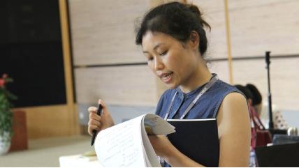 有的老師捧著自己的筆記,邊來回踱步,邊一字一句地輕聲練習(xí)。