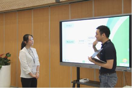 有的老師站在大屏前,不斷地模擬考核的場景,并且讓其他老師幫忙指出自己的不足——“我剛剛講的有哪里不對嗎?沒事兒,你盡管說,我想表現(xiàn)的更好一些。”“整體表現(xiàn)都很好,不過你可以試著更加親切一些,你看像這樣會不會更好……”
