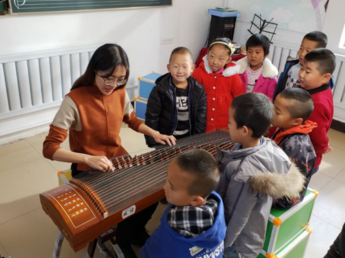 孟老師看到學校有一臺教育局配備的古箏,但沒有老師會彈,沒法教給孩子們。于是借著假期,孟老師就在家附近自己掏錢報了古箏課程。只學了一期的課程,甚至彈奏的時候都并不是非常熟練,她還是給學校的孩子們開了古箏課,她說:“我還年輕,學東西快,如果我不學,就沒有人能教給孩子們了。”