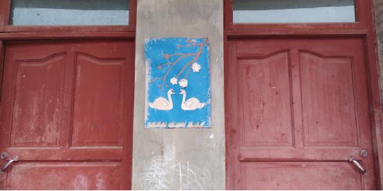 第二天上午,王校長安排了一位也要去學校的老師,順路帶我到學校,學校在村里,離小鎮約六公里,面包車在崎嶇的小路上一搖一晃,我的心也跟著一顛一顛。經過一個陡峭的下坡,我們到了學校,王校長和三位老師已經在門口迎接我,除了王校長,其他三位老師看起來年紀稍大,后來了解到,三位老師都是五十多歲,即將退休。