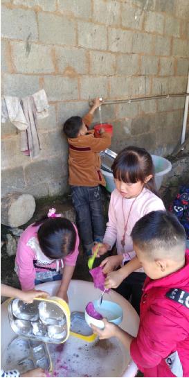 (孩子們自覺洗碗)