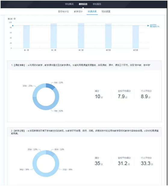 最后,通過線下聽課與線上信鴿中多維度的評課高效公正的為老師們精彩的授課做了評價。