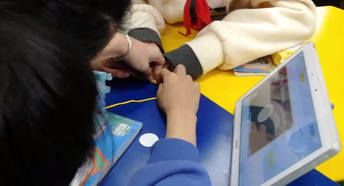 有一天我在巡課的時候發現一位50多歲的老教師,讓學生做一個小互動,當時我好奇你在做什么樣的事情?他說我在教b和p書寫的方式,我很驚訝,這不是工具作為支撐的過程嗎?不就是我們尋找的課堂中和學生之間的互動嗎?當時這件事給了我很大觸動。