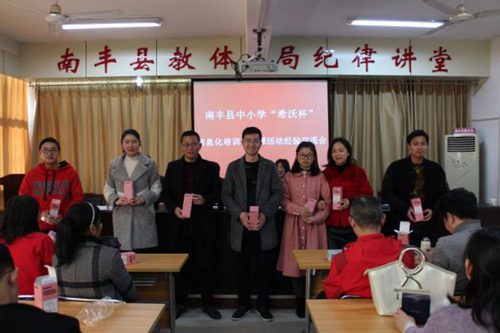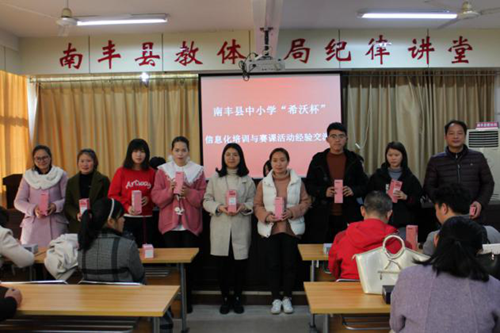 交流會(huì)上,南豐縣教體局為此次大賽榮獲一等獎(jiǎng)、二等獎(jiǎng)的優(yōu)秀教師進(jìn)行頒獎(jiǎng),小學(xué)萬(wàn)志紅、黃曦老師及中學(xué)江文華、洪劍玲老師在會(huì)上作經(jīng)驗(yàn)交流分享,對(duì)此次培訓(xùn)的希沃白板5、班級(jí)優(yōu)化大師、移動(dòng)授課助手等教學(xué)工具對(duì)教學(xué)帶來的幫助表示感謝,期望能有更多的機(jī)會(huì)參與信息化教學(xué)能力提升的活動(dòng),期望能與更多的老師一起成長(zhǎng)。