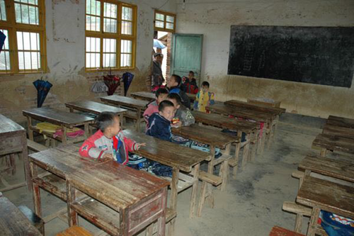 偏遠的鄉村地區,老師們用的最多的,依然那每支售價不到0.1元的粉筆和身后褪色的黑板。坐在側邊的學生們,因為黑板反光,努力側著身子,希望能多看到幾個字。除此以外,他們只有身旁的墻上的那句“學海無涯苦作舟”作伴。
