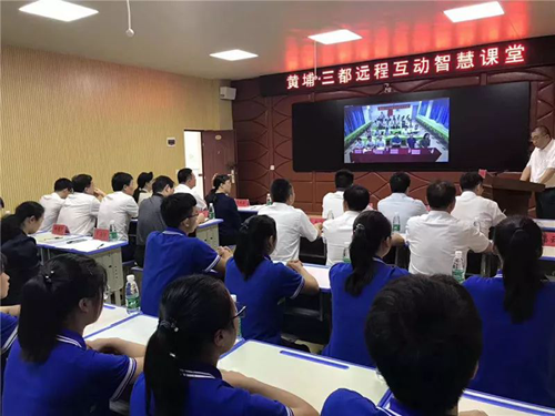 雖然相距700多公里,通過希沃交互智能錄播系統(tǒng),黃埔與三都兩地領導與學生代表同步為“黃埔三都遠程互動智慧課堂”揭牌,宣布智慧課堂正式啟動。紅綢落下的那一刻,意味著兩地區(qū)的遠程互動智慧課堂開啟了新的篇章。