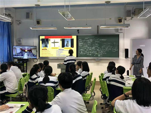 看到老師如變魔術般地,把黑板上的思維導圖傳到旁邊的顯示屏,兩教室可以共享一塊黑板時,即便是已經習慣用希沃交互智能平板上課的廣州八十六中的同學們,依然發(fā)出“哇!”的一聲驚嘆。現(xiàn)場領導似乎被孩子們的天真爛漫感染到,也都笑了起來。