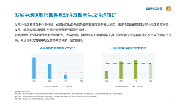 通過分析教學行為區域差異,發現:在發展中地區,希沃提供的系列軟硬件正在提升教師信息化教學水平,助力國家教育均衡發展。
