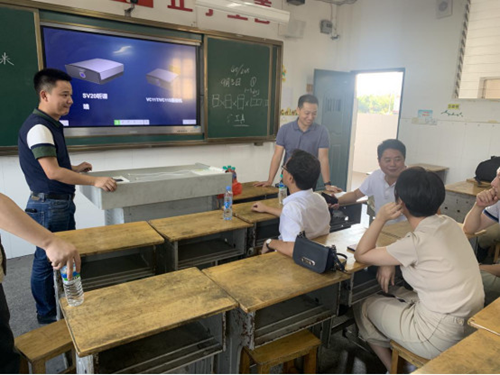 針對領(lǐng)導(dǎo)提出的問題,希沃專遞課堂負(fù)責(zé)人做出了解釋:“針對收音不均勻的問題,我們設(shè)計(jì)了掛在教室中間的全向麥克風(fēng),同時(shí),我們的‘一師一麥’的方案,讓教師通過一個(gè)無線耳戴式麥克風(fēng)直接連接音響收音,也能更好解決收音不均勻的問題。”