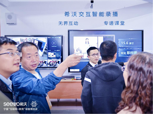 希沃攜三大新品——希沃易課堂、希沃交互智能錄播、希沃云班牌驚艷亮相,憑借創新的功能設計,先進的技術與解決方案,吸引了大批國內外參展人士駐足觀看,獲得各電教館館長、校長、老師的高度關注,并接受了寧夏電視臺的采訪。