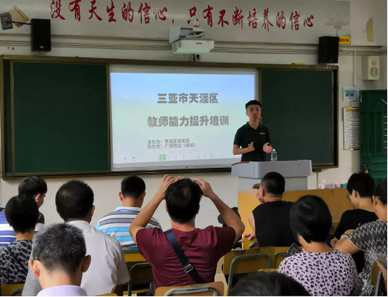 其次是線下的初級(jí)培訓(xùn)。初級(jí)培訓(xùn)階段,希沃團(tuán)隊(duì)的金牌講師下到天涯區(qū)的每一學(xué)校,進(jìn)行到校的培訓(xùn),為老師們講解希沃交互智能平板的使用技巧并解答相關(guān)問(wèn)題。培訓(xùn)落地到每一個(gè)學(xué)校,無(wú)論距離多遠(yuǎn),希沃講師也會(huì)到現(xiàn)場(chǎng)進(jìn)行培訓(xùn)。