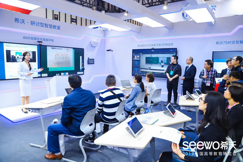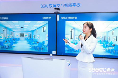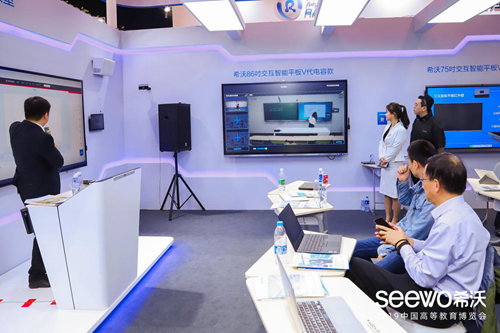 以科技賦能高等教育現代化建設,希沃攜研討型教室、智慧教室、校園文化長廊等全新場景方案驚艷亮相,立即獲得各教育局領導、高校老師、渠道合作伙伴、權威媒體的廣泛關注。