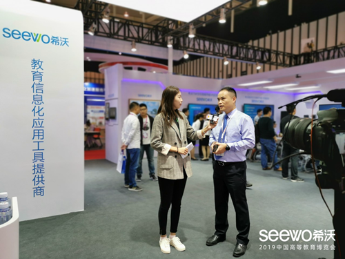 此次高博會,憑借科技性的高教方案,希沃吸引了多家權威媒體的關注與報道。在展會現場,慧聰網、中國教育電視臺分別對視源股份未來教育集團多媒體事業部總經理周海生、希沃高職教全國總監周曉鋒展開了深入訪談。