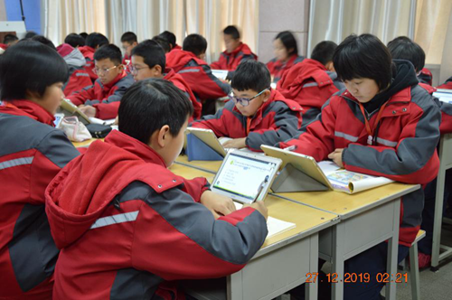 在課堂展示活動結束后,左權二中原校長針對左權二中智慧課堂建設的進度以及思路進行講解。此外,基于半年以來學生的考試測驗成績,就左權二中智慧課堂的成果進行匯報。原校長表示,半年以來,左權二中的智慧課堂建設為教師教學減負提效,學生選精準提分上獲得顯著成效,實現了教學課堂模式的創新,充分激發學生學習興趣和自主學習能力。