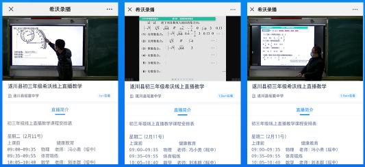 “希沃錄播云資源管理平臺”,實行初三年級課程直播,搭建線上教學平臺,免費為全縣初三學生在春季學期延期開學期間提供線上遠程輔導答疑服務,做到防疫期間的宣傳教育及心里輔導。