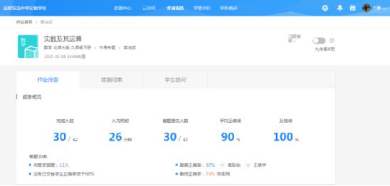 教授七年級(jí)英語(yǔ)的何老師說(shuō):“進(jìn)入作業(yè)報(bào)告后我眼前一亮:答題人數(shù)、未提交答案人數(shù)、平均用時(shí)、最高正確率、最低正確率等各種數(shù)據(jù)一目了然。特別是看到每個(gè)小題的正確率和學(xué)生答題詳情,感覺(jué)作業(yè)評(píng)講不再迷茫。“