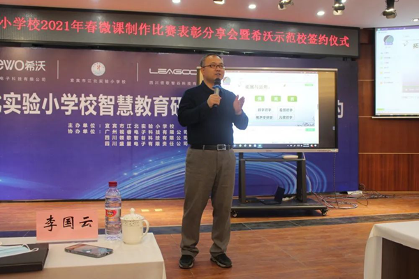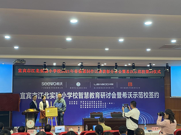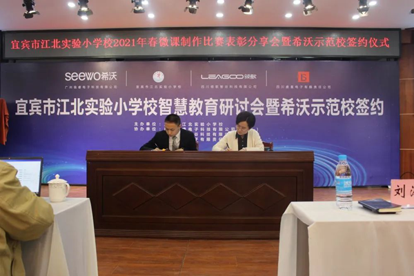 3月26日下午,智慧教育研討會暨希沃示范校簽約儀式在宜賓市江北實驗小學校翠微路校區(qū)學術報告廳舉辦。翠屏區(qū)十多所學校齊聚一堂,聆聽智慧教育的聲音,借助信息技術手段構建智慧課堂,交流信息技術與學科教學深度融合的思路與方法。
