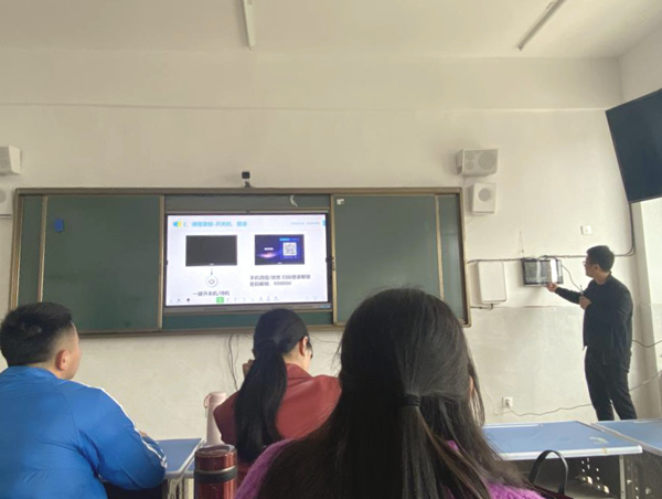 遠(yuǎn)程課堂中,右側(cè)錄播主機(jī)進(jìn)行音視頻處理老師在一體機(jī)開(kāi)啟互動(dòng)