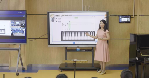 「我讓學(xué)生在智慧黑板的一組琴鍵上彈出所有的『do』,那邊的孩子也能同時(shí)在他們的黑板上操作,我們馬上看到兩邊孩子上課的情況�!估鬄成倌陮m的李老師說(shuō)。