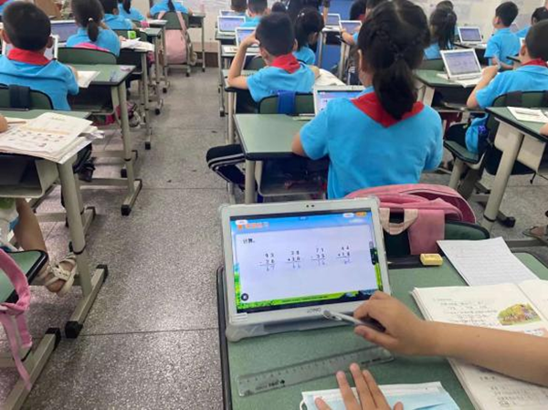 同時,周老師也采用希沃易課堂內置的豐富有趣游戲與學生進行互動,讓課堂變得有趣生動,并根據實時反饋的學情數據,開始有針對性的復習教學。此外,在鞏固練習環節,周老師通過截屏推送功能收集學生作答作品,完成即時呈現與作品評講,實現鞏固復習。一節40分鐘課堂,學生全程興致高漲,真正做到了寓教于樂,告別枯燥乏味的授課模式。