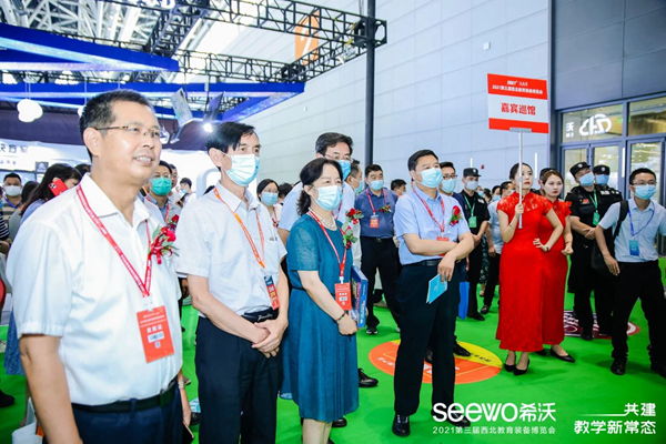 開展第一天,希沃展區人氣持續高漲,現場人群絡繹不絕。陜西省教育廳及省裝備行業協會領導嘉賓蒞臨希沃展區參觀體驗,并對希沃產品表示高度的認可。