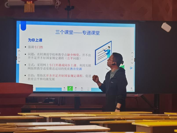 前郭縣室教師進(jìn)修學(xué)校信息技術(shù)教研王主任對“三個課堂”建設(shè)政策解讀及本地建設(shè)目標(biāo)進(jìn)行了宣導(dǎo)。從松原市前郭縣“互聯(lián)網(wǎng)+教育”工作的現(xiàn)狀及發(fā)展歷程以及“三個課堂”建設(shè)與常態(tài)化應(yīng)用的啟動背景進(jìn)行分析,并表示了今后前郭縣將就“三個課堂”建設(shè)與應(yīng)用進(jìn)行不斷實踐與探索的決心。