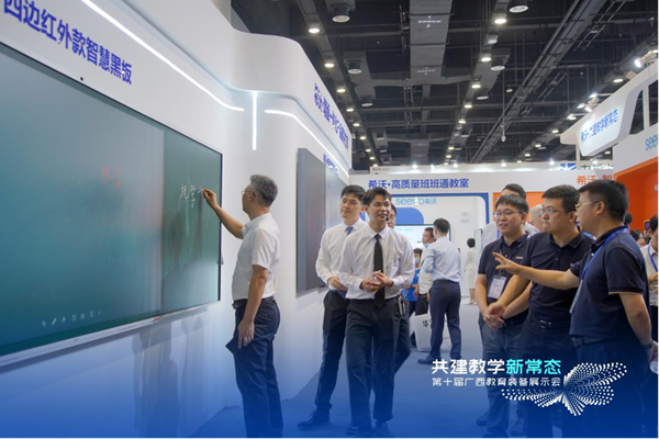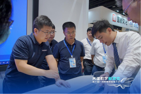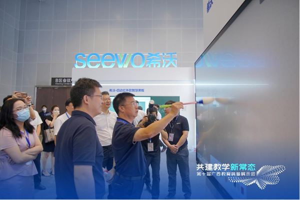 展會現場,廣西省南寧市人民政府副秘書長蒙文虎等領導蒞臨希沃展位,深度體驗了全形態墻面一體化產品解決方案、交互智能平板高精度紅外系列、精品錄播教室和一體化LED顯示終端等產品方案。其中,希沃四邊紅外智慧黑板所搭載的一鍵開啟主屏和副屏記憶存儲功能,和在傳統板書習慣與全新智能交互結合上的完美體驗,受到現場領導的一致認可。