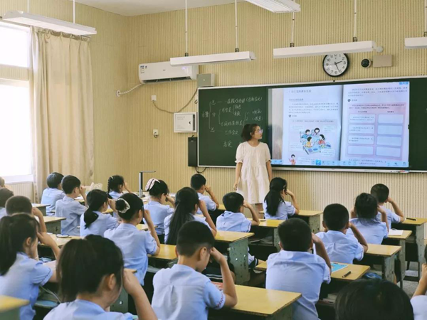 9月1日上午,船寮鎮小學教育集團的教室里傳來了朗朗書聲。五(2)班語文老師藍秀秀正處于新型教學空間內,使用全新設備給學生們上課。藍老師說:“對比之前的教學設備,使用希沃智慧黑板進行教學是一次全新的體驗。身為新時代背景下的教師,我們必須與時俱進,利用好信息化教學設備,才能更好地進行教學、服務學生�!�
