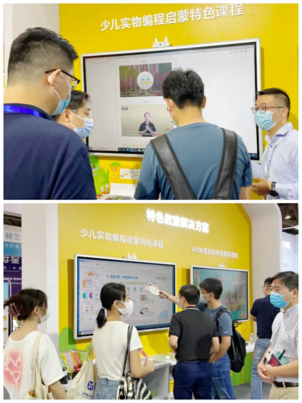 信息化時代當前,用創(chuàng)新好產(chǎn)品助力提升學前教育質(zhì)量,是行業(yè)不可忽視的重要命題。展會上,希沃帶來了涵蓋幼教交互智能平板、體感攝像頭與希沃幼教筆等多項產(chǎn)品的幼教解決方案,打通教與學的多個環(huán)節(jié),全面保障更高水平的幼兒教育。在展區(qū)現(xiàn)場,特色教室解決方案的AR體感互動特色教學課程與少兒實物編程啟蒙特色課程吸引了許多觀展觀眾圍觀,工作人員和觀眾就希沃幼教的特色方案如何落地展開了深入交流。