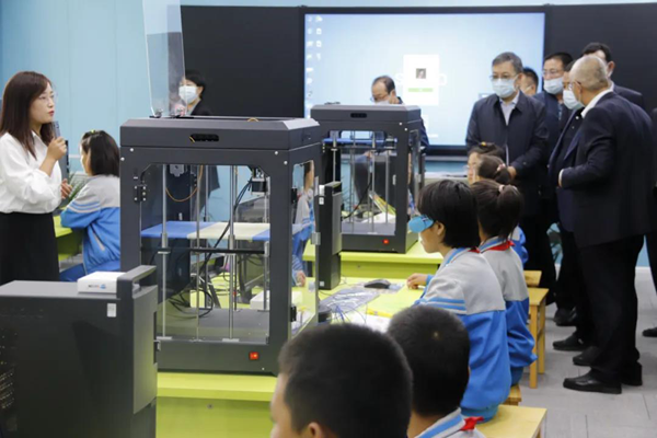 活動伊始,來自希沃邀請的華北地區(qū)專家團隊、同心縣教育局領導以及同心縣各學校的參會教師,集體參觀了同心一小的信息化功能室、名師工作室等區(qū)域。